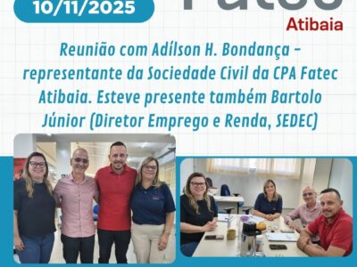 Reunião dos representantes de sala com a diretora da Fatec Atibaia e a coordenadora de curso